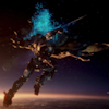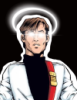 Description: comics Wedge in dress uniform with glowing white eyes and a halo. like the most terrifying angel you've ever seen